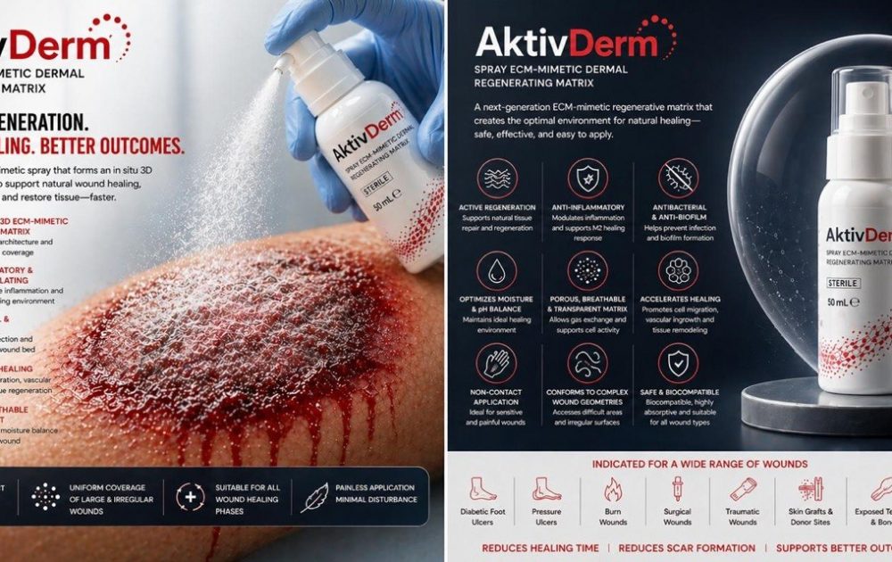 Its spray delivery system enables fast, even distribution across complex wound surfaces while forming a protective regenerative matrix.