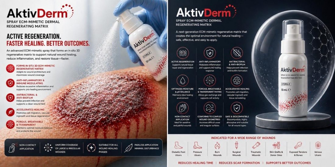 AktivDerm Spray ECM-mimetic Dermal Regenerating Matrix is suitable for a broad spectrum of acute and chronic wounds, including: